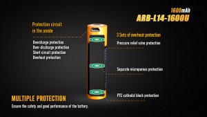 The ARB-L14-1600U can be used as AA battery and charged via its own USB port. A protective circuit is built into the anode and covered with a riveted steel hat. The battery is fully covered with the steel shell, thus the potential risk of short circuiting caused by collision or impact is hugely eliminated.